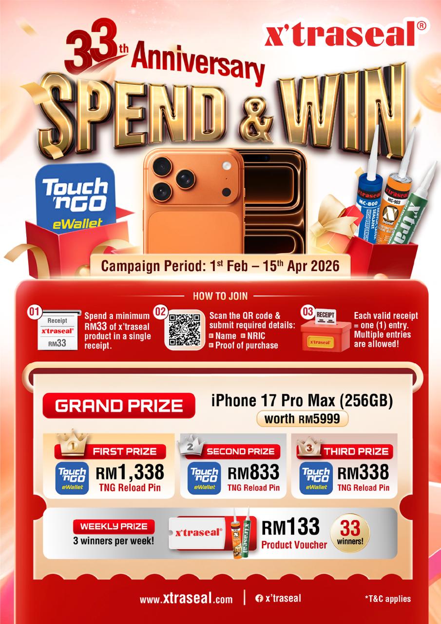 Terms & Conditions 1. Contest Period The x’traseal 33rd Anniversary Spend & Win Contest (“Contest”) will run from 1 February 2026, 12:01 AM until 15 April 2026, 11:59 PM (Malaysian Time) (“Contest Period”). Any entries received outside the Contest Period will be deemed invalid. 2. Eligibility This Contest is open to all Malaysian citizens holding a valid NRIC, except: · Employees… Continue reading x’traseal 33rd Anniversary Spend & Win Contest 2026